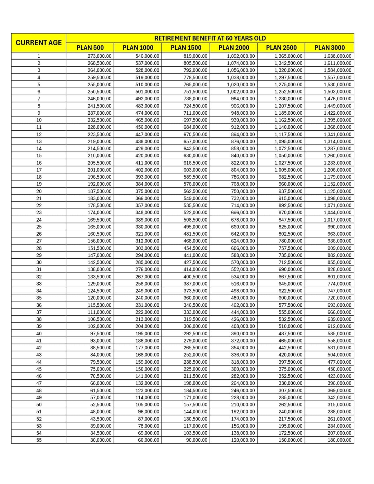 · Maturity: Members can withdraw their full Retirement Claim Benefit at age60, provided they have completed the 5-year payment term.